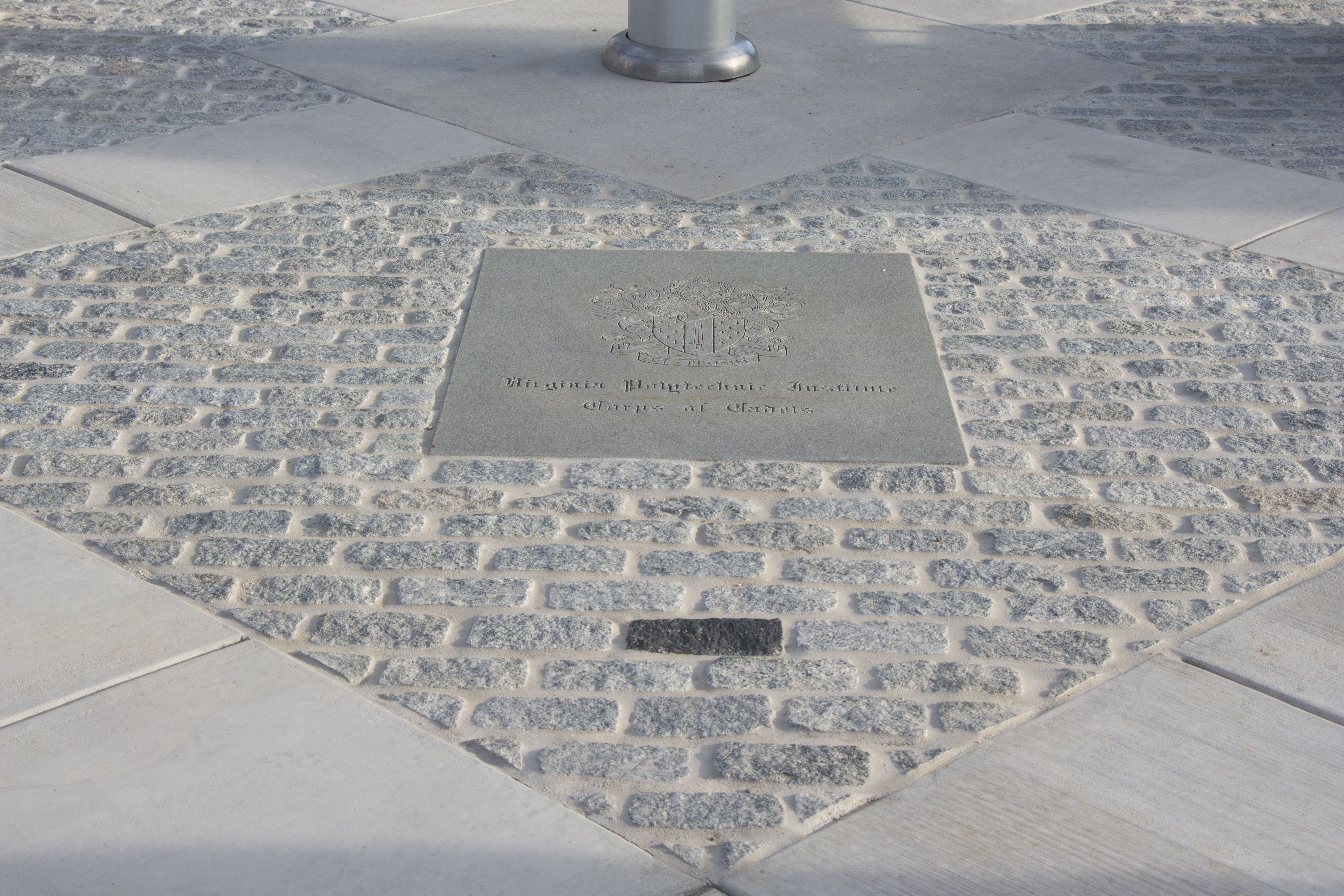 Previous Image Next Image 2 Blacksburg, Va., Nov. 10- The Rock Memorial—The darker gray stone is in memory of Cadet Matthew La Porte who was killed during the April 16 shooting. La Porte was a drummer in the Highty Tighties. Photo: Alexis Johnson.