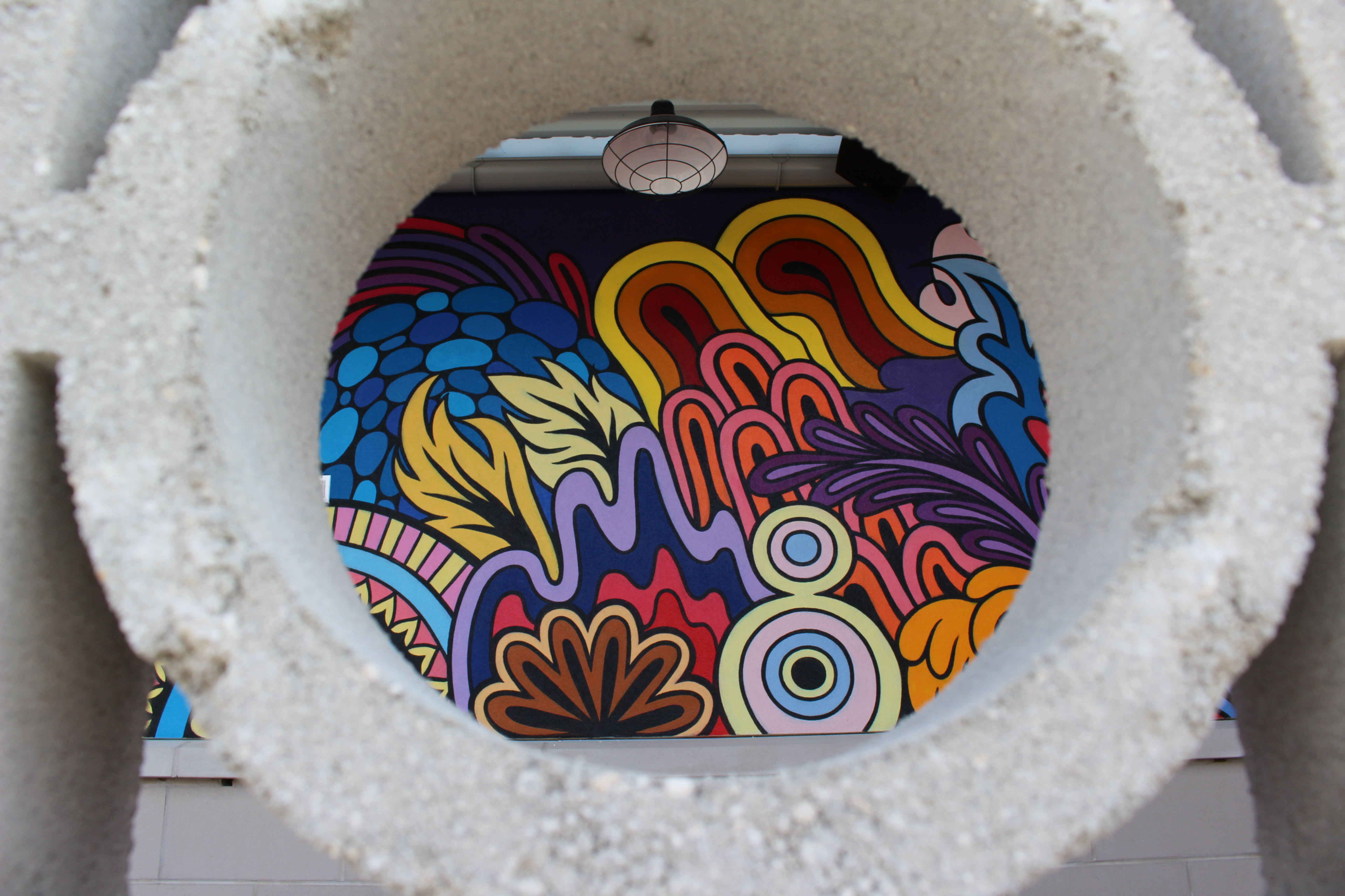 Previous Image Next Image img_9721 ROANOKE, Oct. 4 – MELLOW MUSHROOM: The mural painted on the outside of the building features colors of pinks, purples, yellows and blues. Photo: Katelin Frosell