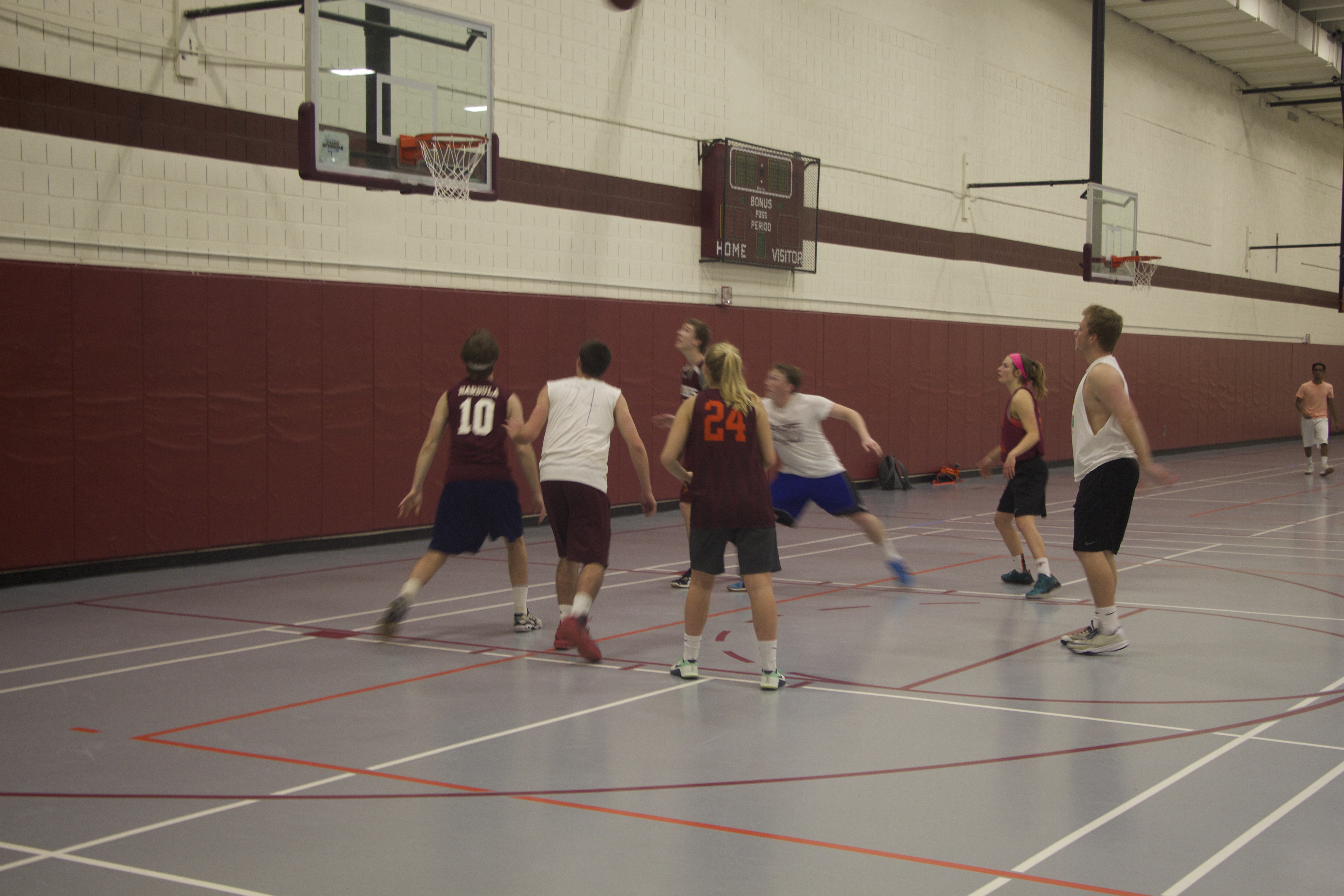 Previous Image Next Image img_1329 Blacksburg, Va., Feb. 23 – And 1: Players anticipate the rebound following a shot. Photo: Johnny Kraft