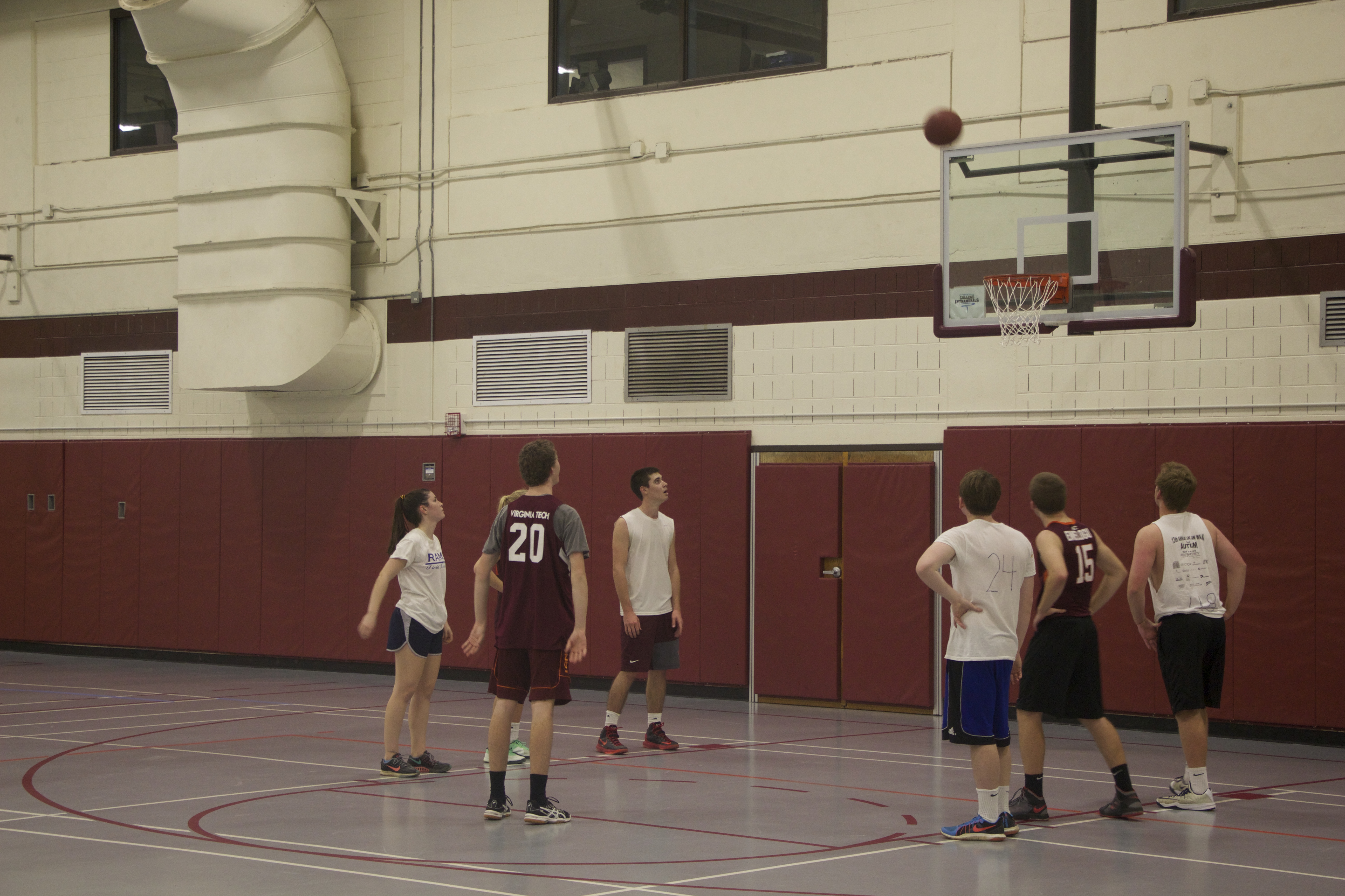 Previous Image Next Image img_1333 Blacksburg, Va., Feb. 23 – Free Throw: Players watch as no. 23 on maroon shoots a free throw. Photo: Johnny Kraft