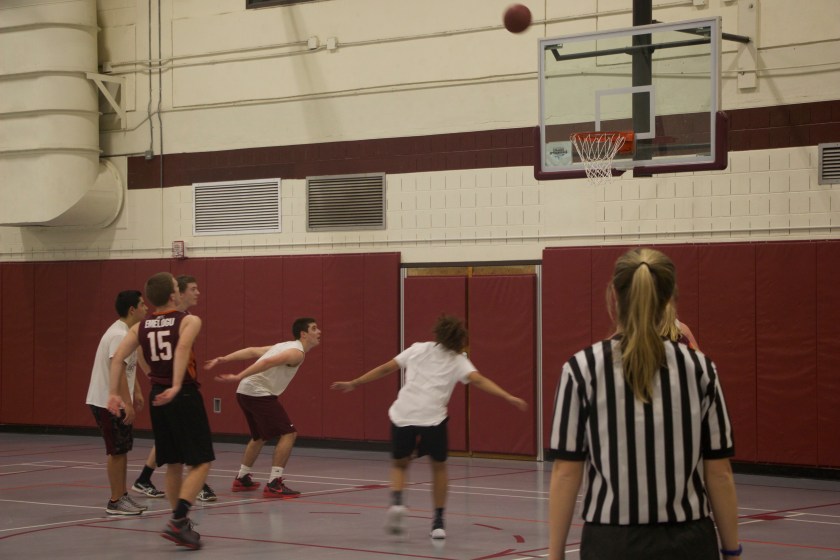 Previous Image Next Image img_1341 Blacksburg, Va., Feb. 23 – Crash the Boards: The white team prepares to grab a rebound following a missed shot. Photo: Johnny Kraft