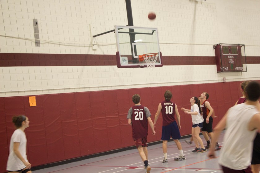 Previous Image Next Image img_1362 Blacksburg, Va., Feb. 23 – CoRec Competition: The great thing about intramurals at Virginia Tech is that regardless of gender and ability, you get the opportunity to play as male and female players join forces as teammates. Photo: Johnny Kraft