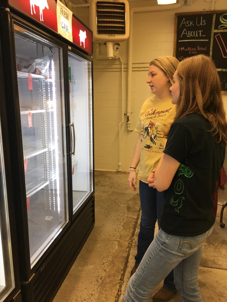 Previous Image Next Image IMG_6774 Blacksburg, Va., March 30- Restocking: Senior Linnea Danielson and junior Madison Slaven restock the Meat Center Store on the Virginia Tech Campus. Both women plan on working with the cattle industry after college. Photo: Katie Lukens