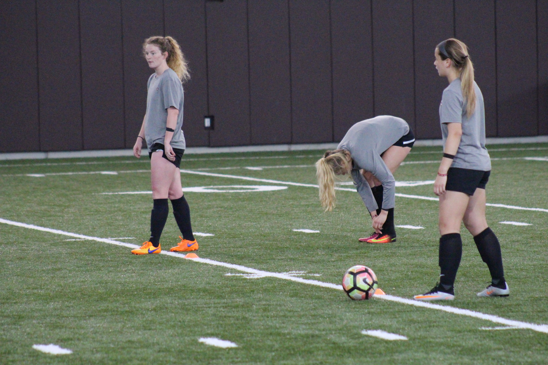 Next Image Image #1 BLACKSBURG, Va., Apr. 11 – Members of the Virginia Tech women’s soccer team practice while wearing black arm bands in honor of the ten year anniversary of April 16th. Photo: Conor Doherty