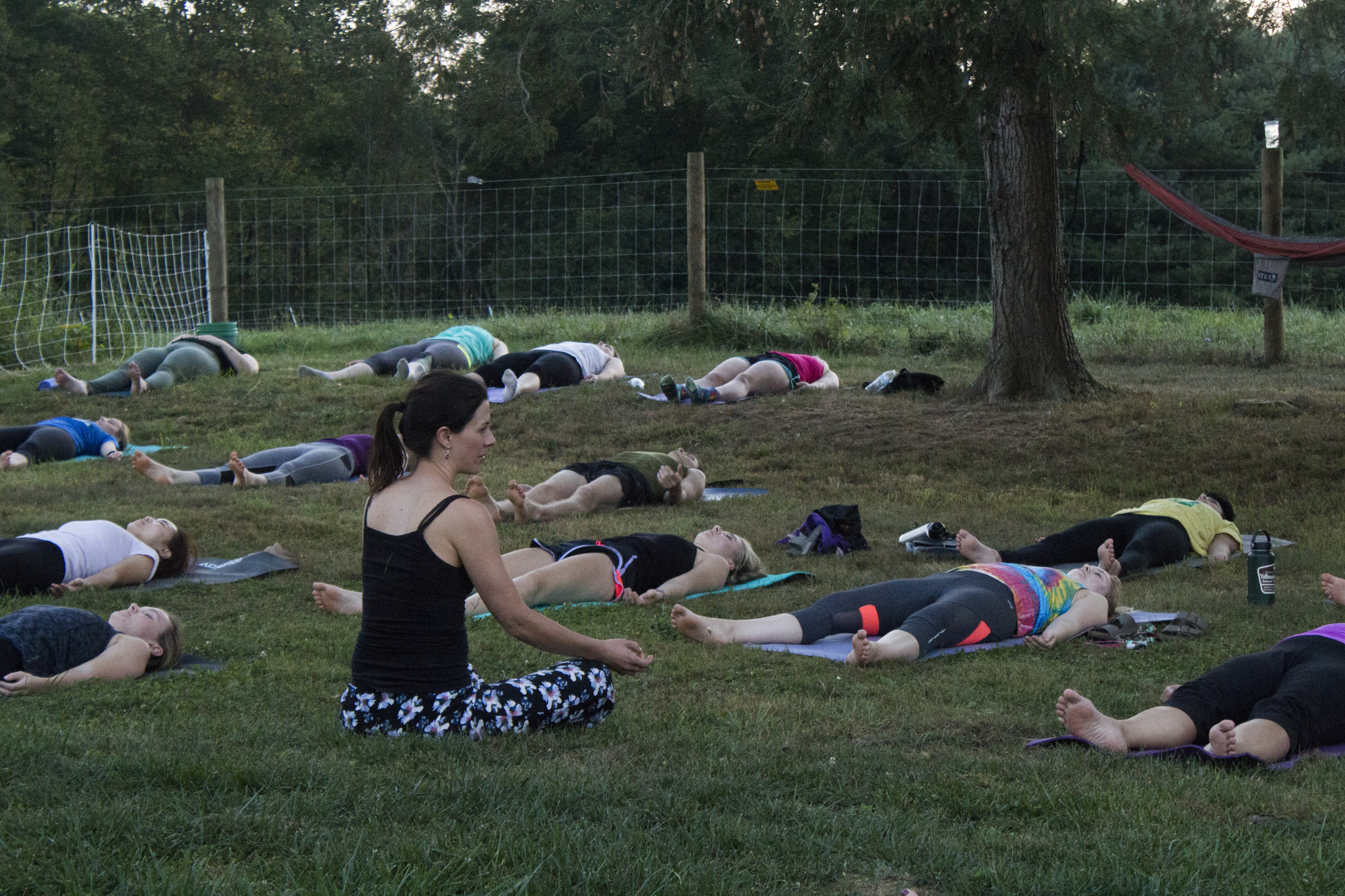 Previous Image goatyoga1 Blacksburg, Va., Sept. 28—Instructing: Kacy McAllister leads a deep breathing exercise at the end of the session. She encourages her students to reflect on how the body feels after an hour of yoga. Photo: Virginia Pellington