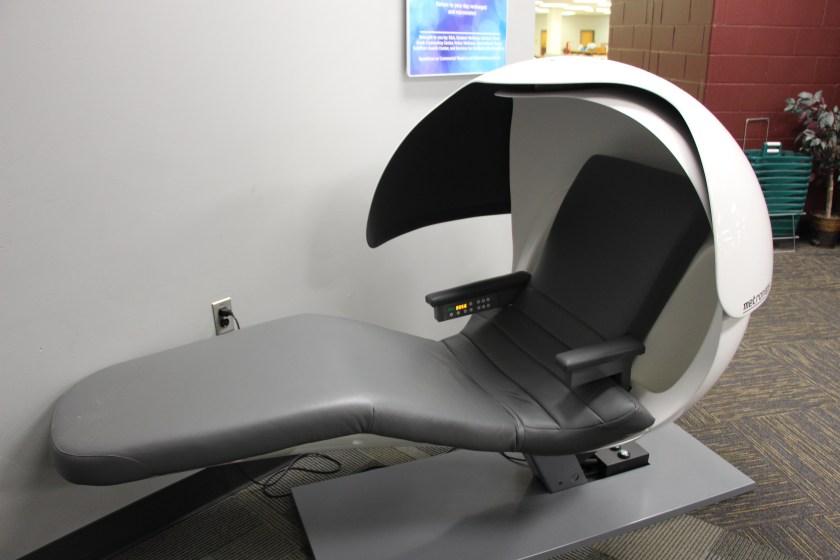 Previous Image Next Image IMG_9611 Blacksburg, Va., Oct. 23 – Nap Time: A nap pod located on the second floor of Newman Library. Photo: Humberto Zarco