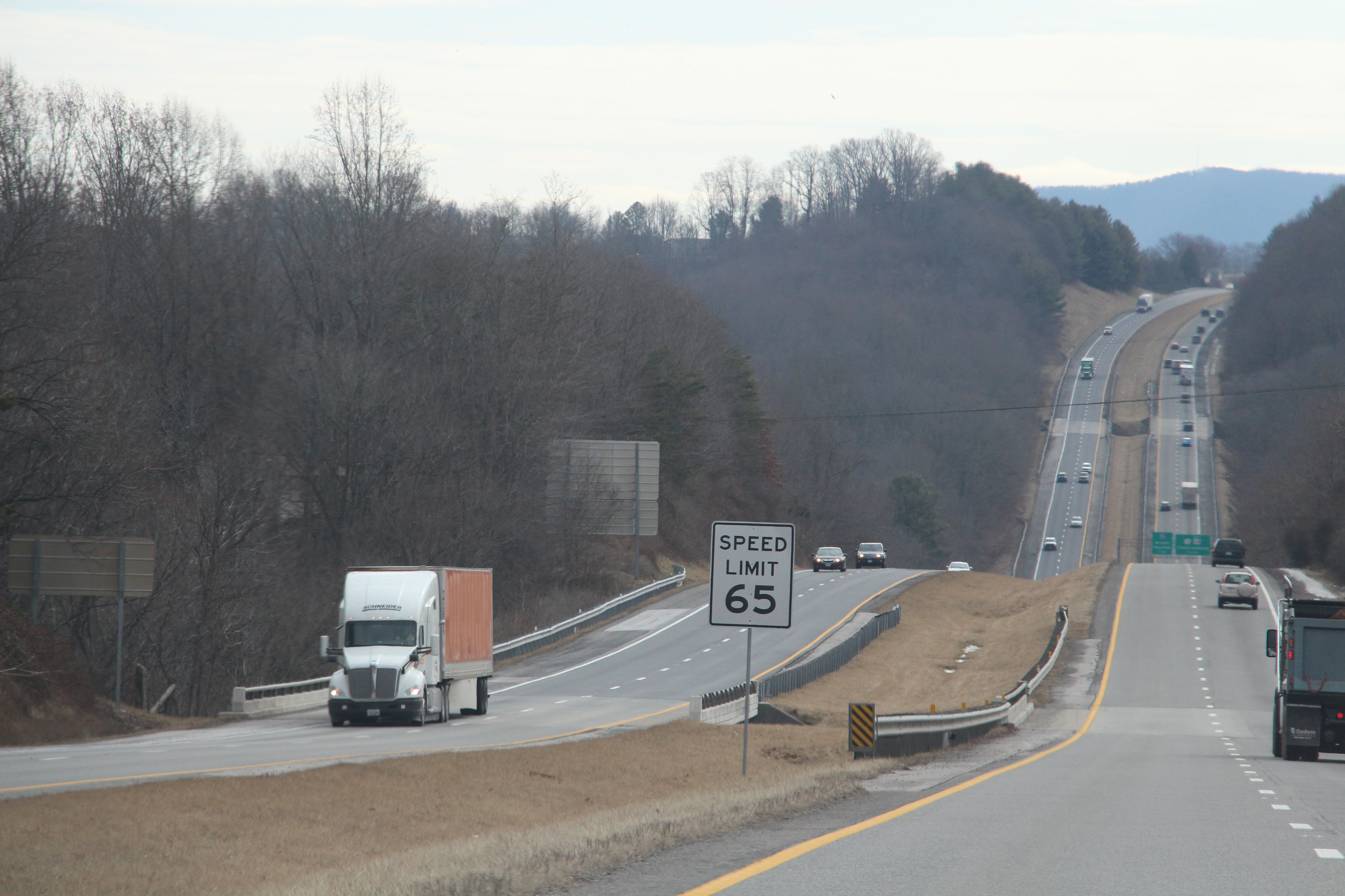 Previous Image Next Image i81_4 BLACKSBURG, V.a., Feb. 6 – Under Senate Bill No. 561, tractor trucks such as this one would be mandated to travel in the right-hand lane in designated areas. Photo: Cody Davis