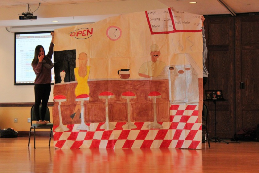 Previous Image Next Image IMG_2650 BLACKSBURG, Va., March 14 – Sketch It: People of all talents can participate in Culture Show. Artists draw the backdrops for the scenes. Photo: Kat Schneider