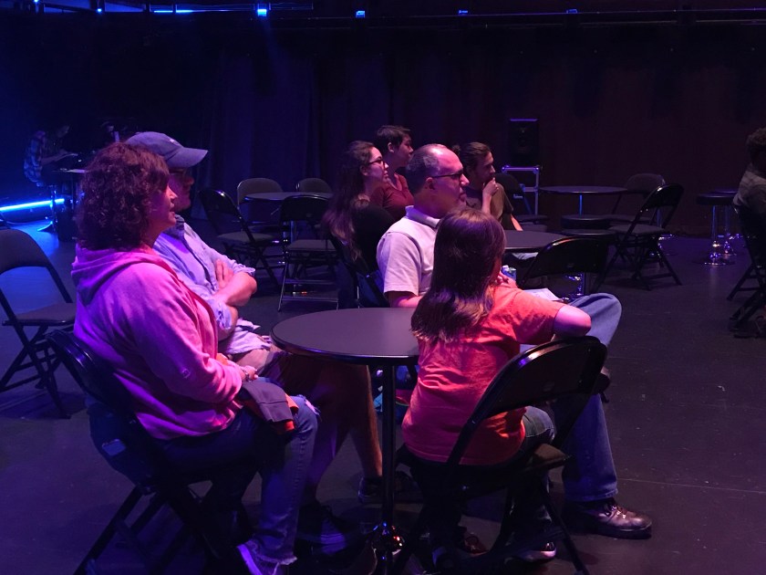 Previous Image Next Image IMG_2713 Blacksburg, Va., April 12 — INTRIGUED: Guests freely walk in and out of the Moss Arts Center Cube to catch what bands they want to see. Photo: Gretchen Kernbach