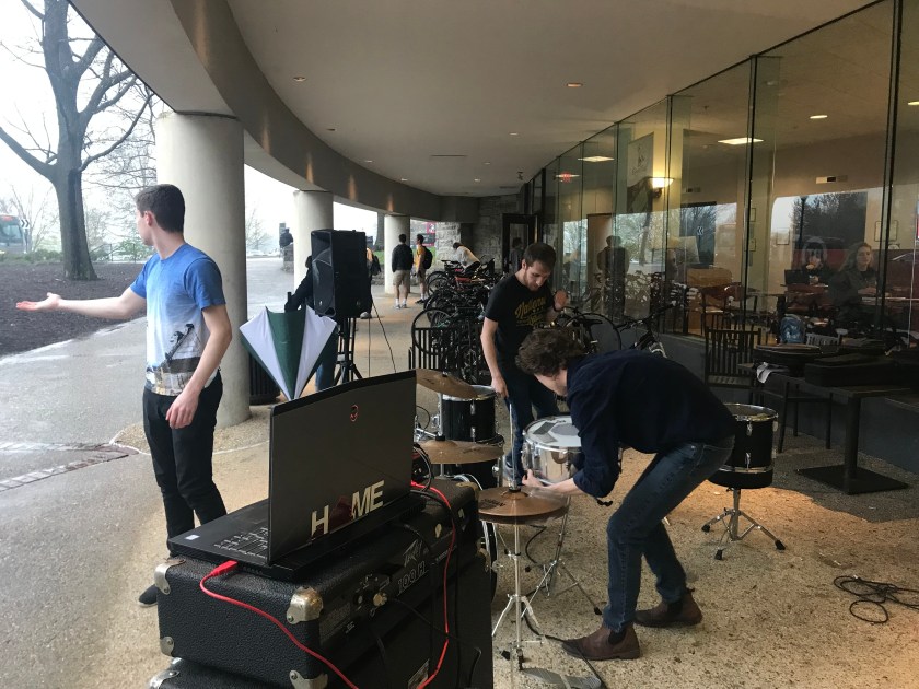 Previous Image Next Image IMG_2716 Blacksburg Va., April 12 — THE SHOW MUST GO ON: The Noodle sets up their equipment despite the heavy rains. Photo: Gretchen Kernbach
