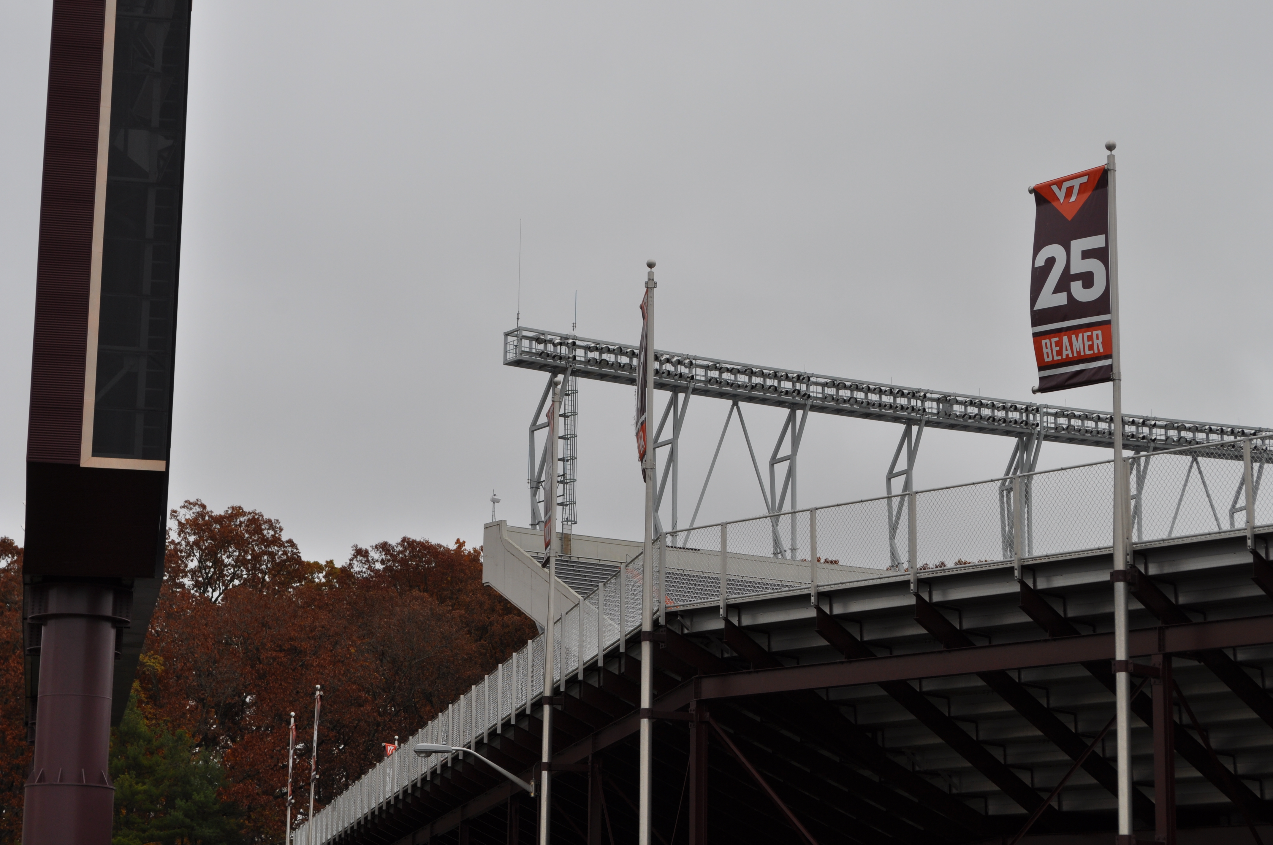 Previous Image Next Image 25 Flag Blacksburg, Va., Nov. 9—Frank Beamer Banner. Located at the back of North End Zone, the banner honors Beamer’s once retired 25-jersey number. Photo: Drew Davis.