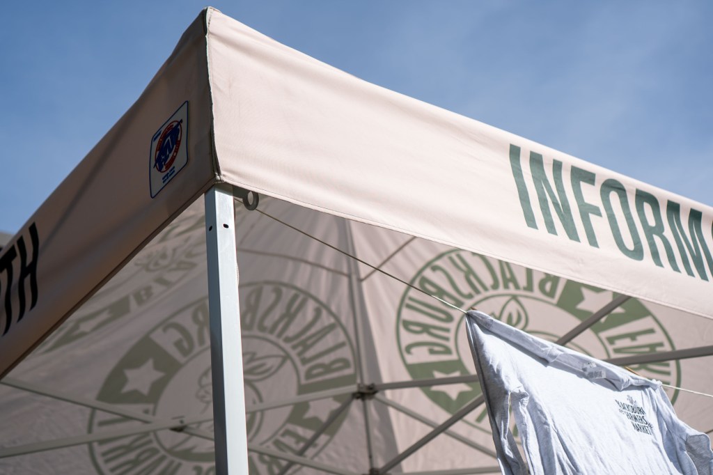 Blacksburg Farmers Market information and SNAP distribution tent. Photo by Elizabeth Ann Miller.