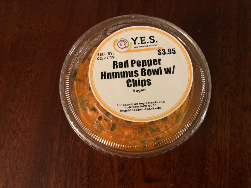 Previous Image Next Image IMG_2064 Blacksburg, Va. Feb.19, Red Pepper Hummus Bowl – One of Bratton’s favorite vegan dishes that he created is the red pepper hummus bowl. Bratton says it is easy to make and is a dish he likes to cook for his wife. Photo by: Tatjana Kondraschow