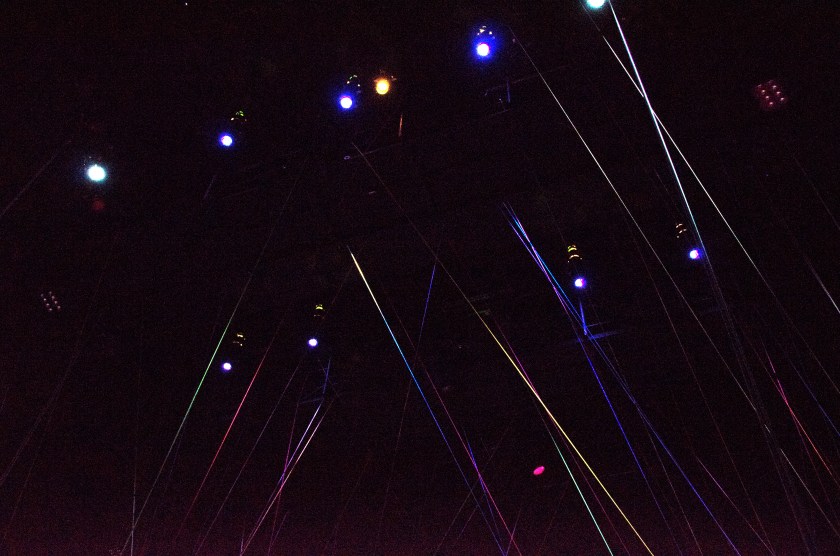 Previous Image Next Image lighting-grid Blacksburg, Va., April 19 – Lighting: Lighting instruments hang from the catwalk, which is 30 feet above the stage. These lamps are maintained by Erika Koekkoek, the Master Electrician. Photo: Lizzy Street