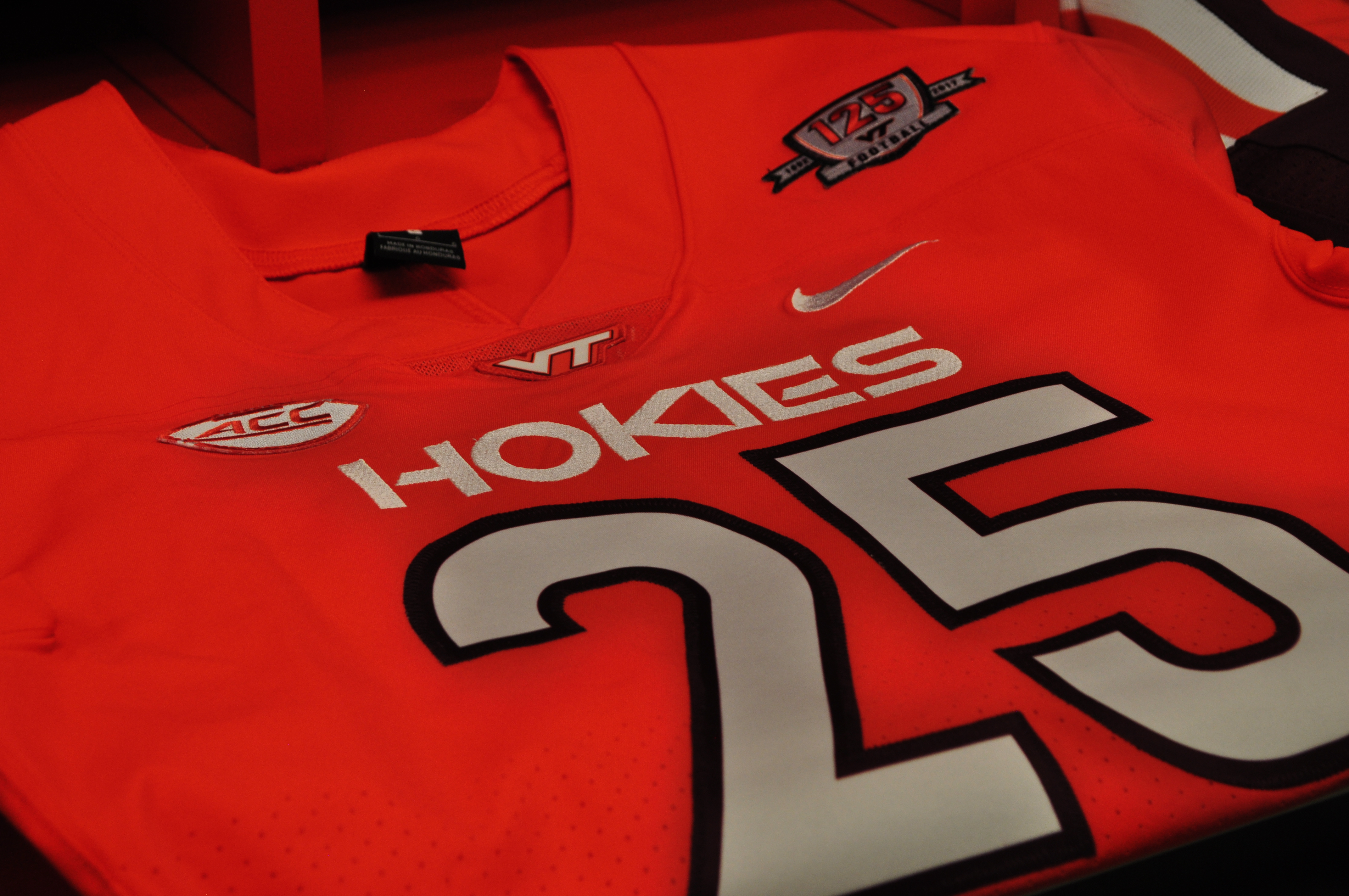 Previous Image Next Image New Orange 25 Blacksburg, Va., Nov. 9—Bright Orange 25. For Homecoming 2017, Virginia Tech football wore a new shade of orange jerseys. True freshman Oscar Bradburn wore Beamer’s 25 for the game. Photo: Drew Davis.