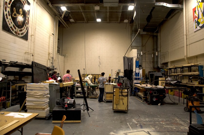 Previous Image Next Image scene-shop Blacksburg, Va., April 19 – Scene Shop: Sets, props and other elements for theatrical productions are put together in the scene shop, which is located behind Squires Studio Theatre. Photo: Lizzy Street